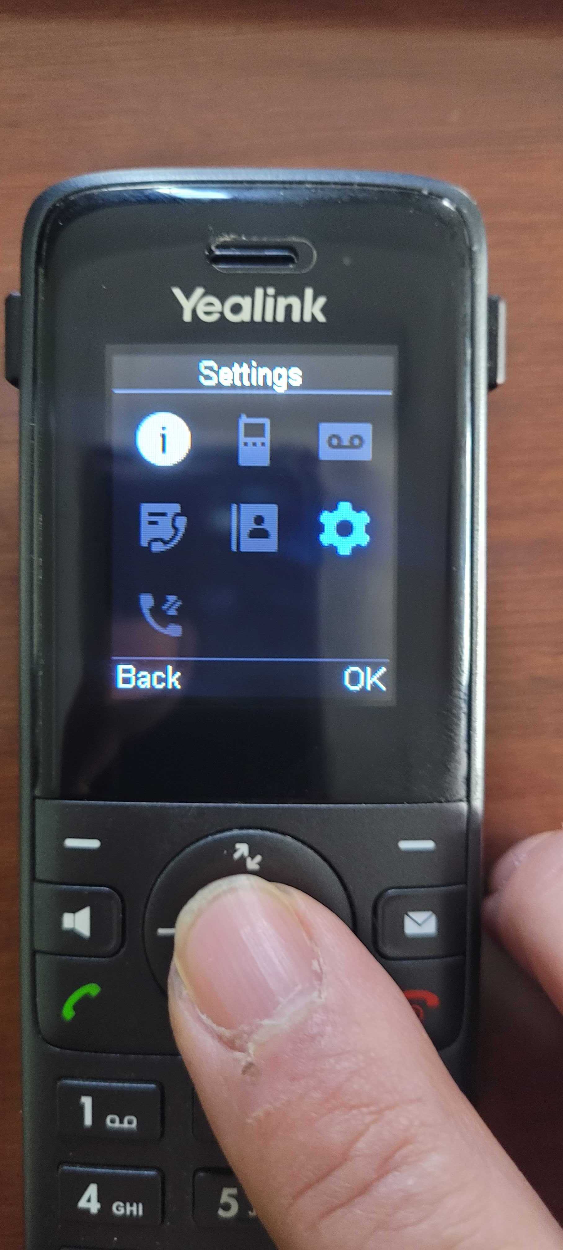 - Press the Menu button and go to Settings on the unpaired handset